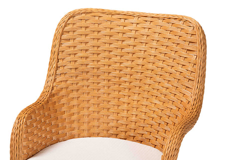 bali & pari Tucson 5-Piece Rattan Dining Set - Round Wicker Table with Scallop Edge and 4 Armchairs, Handwoven Boho Coastal Style for Dining, Kitchen or Sun Room, Light Honey