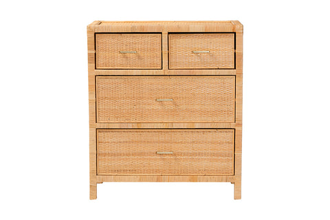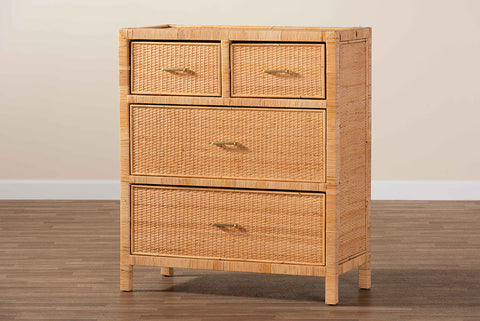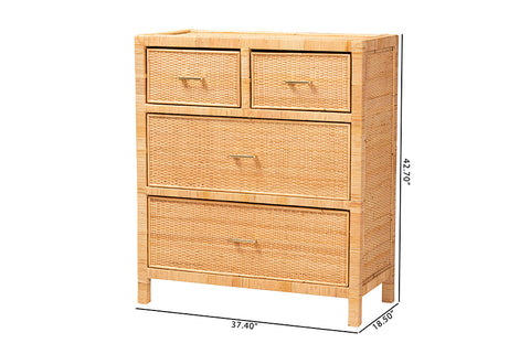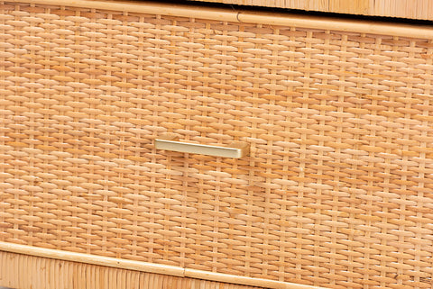 bali & pari Vaere Modern Bohemian Natural Brown Rattan and Mahogany Wood Storage Cabinet