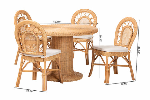 bali & pari Walker 5-Piece Natural Rattan Dining Set - Handwoven Wicker Set with Round Pedestal Table and 4 Curved Back Chairs, Coastal Boho Dining Room Furniture with Cushioned Seating