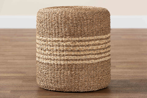 bali & pari Wickham Modern Bohemian Natural Brown Seagrass Ottoman Footstool