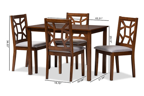 Baxton Studio Abilene Mid-Century Walnut Finished and Grey Fabric Upholstered 5-Piece Dining Set
