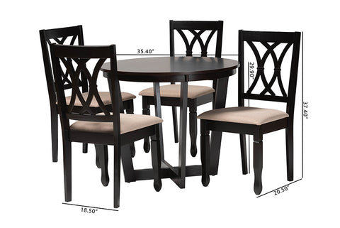 Baxton Studio Aggie Modern Sand Fabric and Dark Brown Finished Wood 5-Piece Dining Set