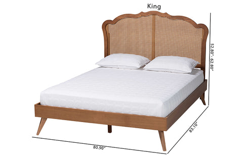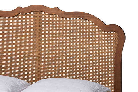 Baxton Studio Aithan Mid-Century Walnut Brown Wood and Rattan Queen Size Platform Bed