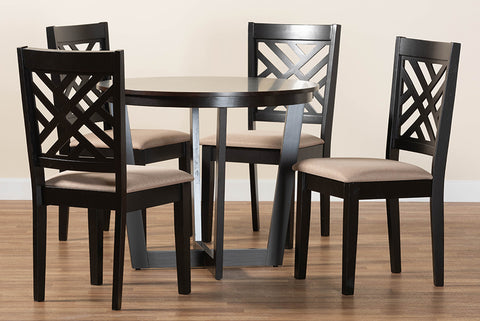 Baxton Studio Alena Modern Sand Fabric and Dark Brown Finished Wood 5-Piece Dining Set