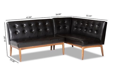 Baxton Studio Arvid Mid-Century Modern Dark Brown Faux Leather Upholstered 2-Piece Wood Dining Nook Banquette Set