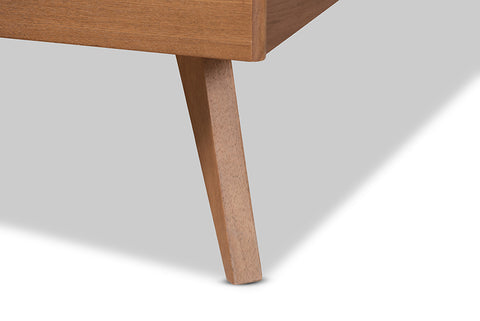 Baxton Studio Asami Mid-Century Modern Walnut Brown Finished Wood and Synthetic Rattan Queen Size Platform Bed