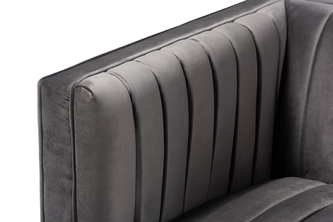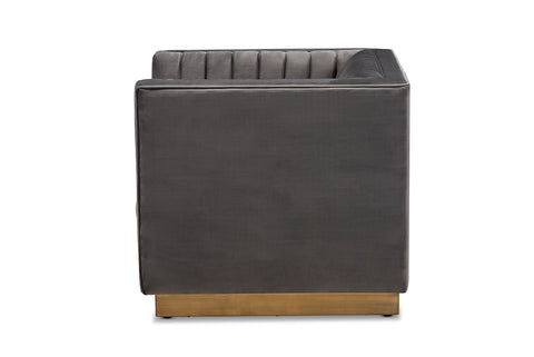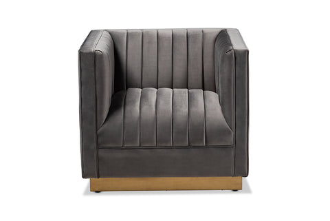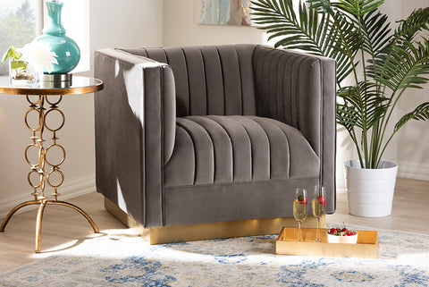 Baxton Studio Aveline Glam and Luxe Grey Velvet Fabric Upholstered Brushed Gold Finished Armchair