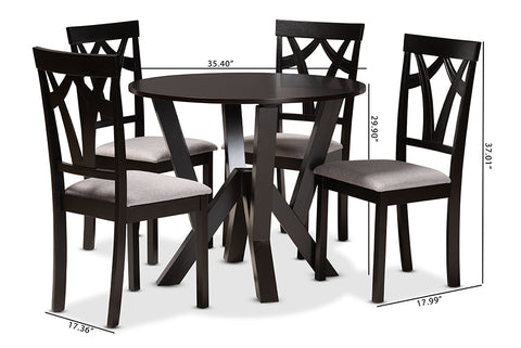 Baxton Studio Branca Modern and Contemporary Grey Fabric Upholstered and Dark Brown Finished Wood 5-Piece Dining Set