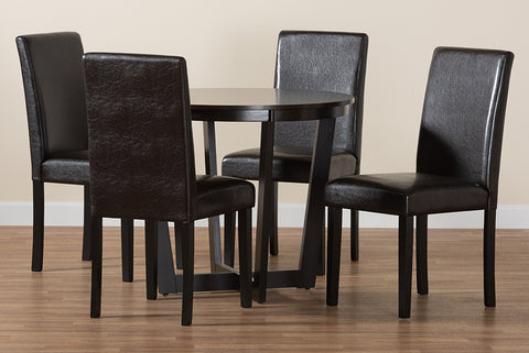 Baxton Studio Bruna Modern Dark Brown Faux Leather and Espresso Brown Finished Wood 5-Piece Dining Set