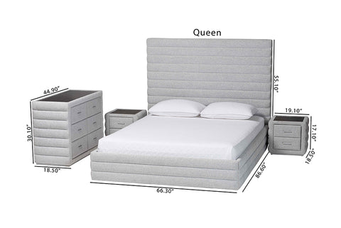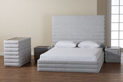 Baxton Studio Cadmus Modern Light Grey Channel-Tufted Fabric King Size 4-Piece Bedroom Set