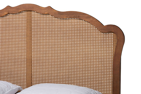 Baxton Studio Camden Mid-Century Walnut Brown Wood and Rattan Queen Size Platform Bed