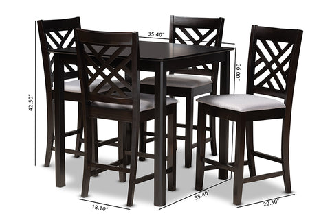 Baxton Studio Caron Modern and Contemporary Gray Fabric Upholstered Espresso Brown Finished 5-Piece Wood Pub Set