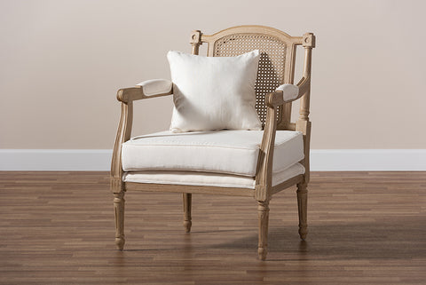 Baxton Studio Clemence French Provincial Ivory Fabric Upholstered Whitewashed Wood Armchair