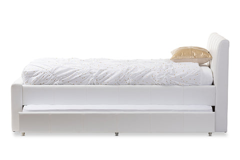 Baxton Studio Cosmo Modern and Contemporary White Faux Leather Twin Size Trundle Bed