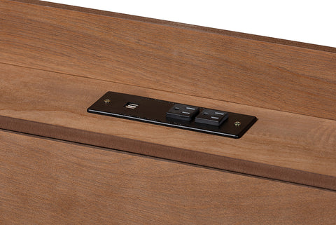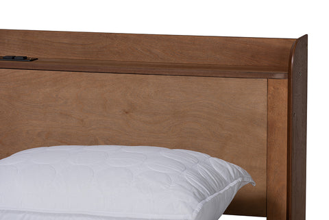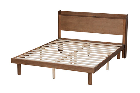 Baxton Studio Decker Mid-Century Modern Transitional Walnut Brown Finished Wood Queen Size Platform Bed with Charging Station