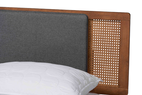 Baxton Studio Delfina Mid-Century Modern Dark Grey Fabric and Walnut Brown Finished Wood King Size Platform Bed