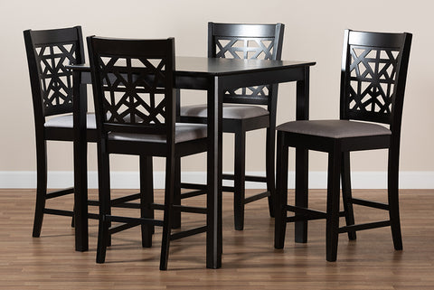 Baxton Studio Devon Modern and Contemporary Grey Fabric Upholstered and Espresso Brown Finished Wood 5-Piece Pub Dining Set