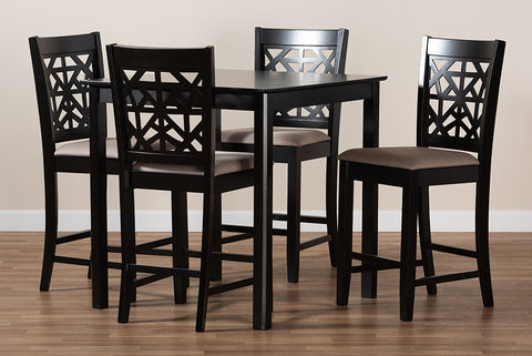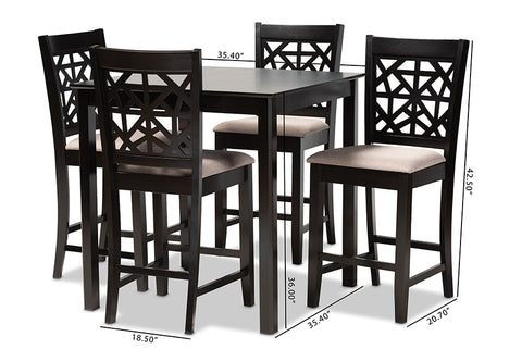 Baxton Studio Devon Modern and Contemporary Sand Fabric Upholstered and Espresso Brown Finished Wood 5-Piece Pub Dining Set