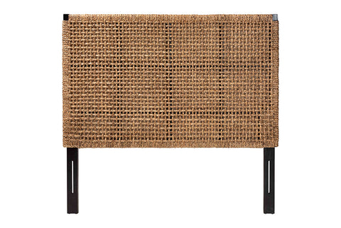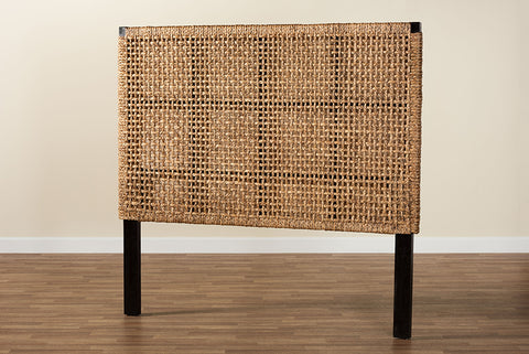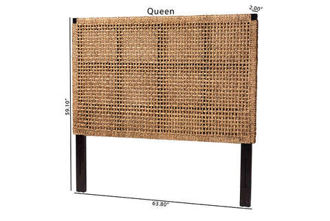 bali & pari Alise Bohemian Seagrass and Dark Brown Mahogany Wood Queen Size Headboard