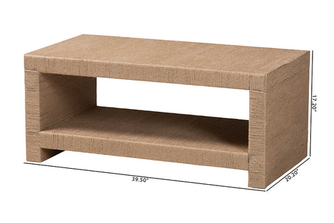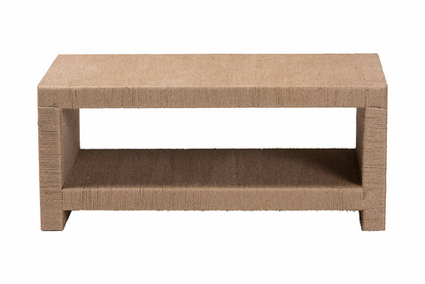 bali & pari Adaya Handwoven Jute Coffee Table - Rectangular Living Room Center Table with Open Shelf Storage, Handcrafted Boho Accent Furniture