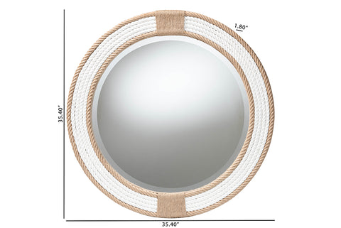 bali & pari Adita Round Woven Rope Mirror - Coastal Mirror with White Fabric and Woven Jute Accents for Farmhouse, Boho Wall Decor, Beach House
