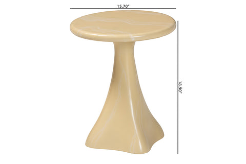 bali & pari Aponi Marbled Resin End Table - Sculptural Side Table with Round Top and Pedestal Base, Modern Contemporary Statement Furniture, Cream