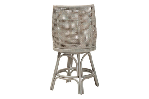 bali & pari Bella Swivel Rattan Counter Stool with Cushion - Handwoven Wicker Kitchen Island Seating with Backrest and Footrest, French Grey
