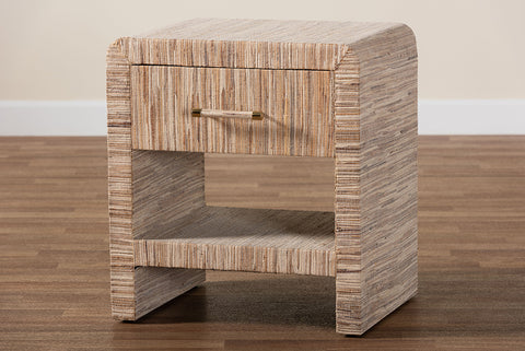 bali & pari Callan Bohemian Woven Natural Grasscloth 1-Drawer Nightstand