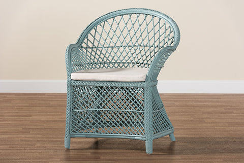 bali & pari Casilda Bohemian Light Blue Braided Rattan Arm Chair