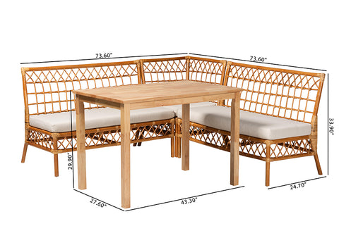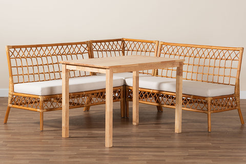 bali & pari Aina Modern Bohemian Honey Rattan 4-Piece Dining Nook Set