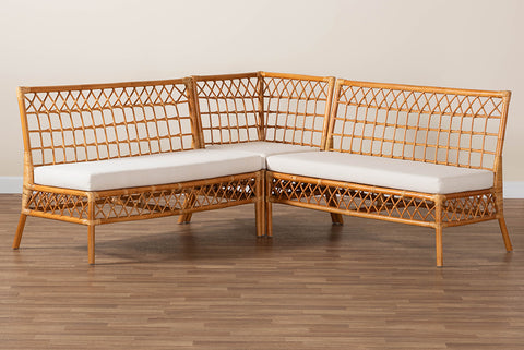 bali & pari Capella Modern Bohemian Honey Rattan 3-Piece Dining Nook Banquette Set