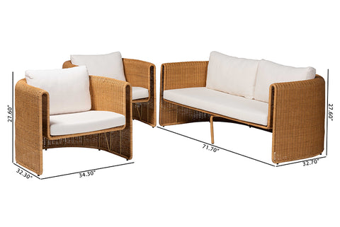 bali & pari Carina Natural Rattan 3-Piece Living Room Set - Lounge Sofa and Armchairs with Handwoven U-Shaped Design for Boho, Coastal, or Tropical Interiors