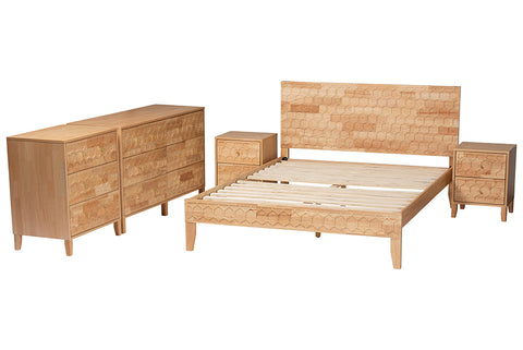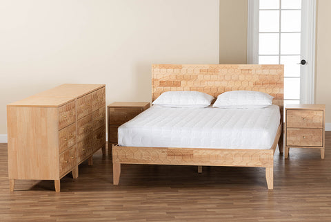 Baxton Studio Hosea Japandi Carved Honeycomb Natural King Size 5-Piece Bedroom Set