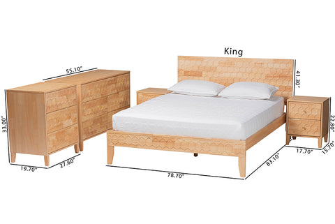 Baxton Studio Hosea Japandi Carved Honeycomb Natural Queen Size 5-Piece Bedroom Set