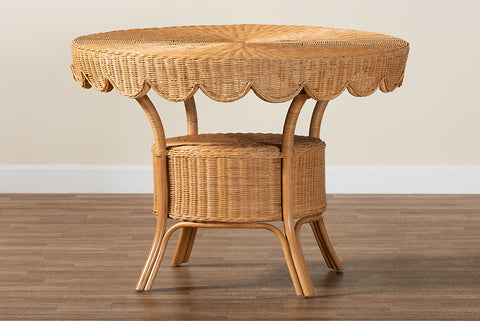 bali & pari Abena Bohemian Scalloped Light Honey Rattan Dining Table