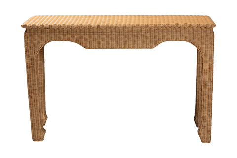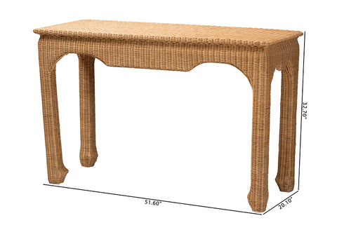 bali & pari Abena Handwoven Natural Rattan Console Table - Ming Style Wicker Accent Table or Sofa Table, Boho Coastal Style Furniture for Hallway, Living Room or Foyer