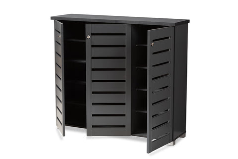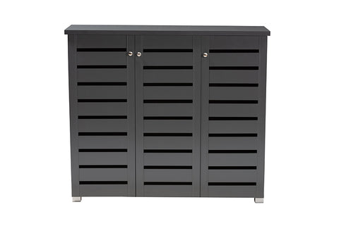 Baxton Studio Adalwin Modern and Contemporary Dark Gray 3-Door Wooden Entryway Shoe Storage Cabinet