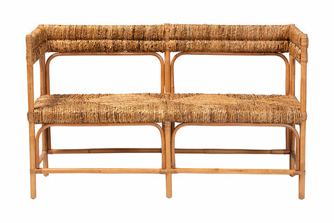 bali & pari Adisa Natural Rattan Bench - Handcrafted Banquette with Woven Seagrass Seat and Back, Coastal Boho Accent Seating for Entryway, Dining or Living Room