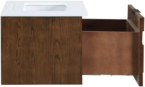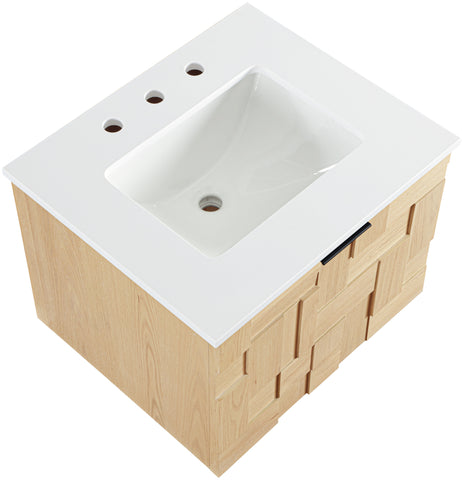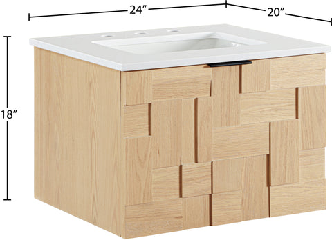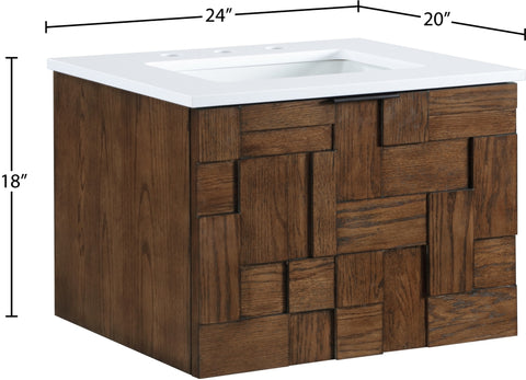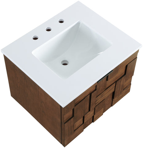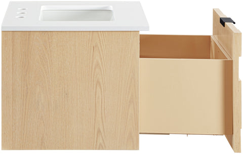 Meridian Furniture Leonardo 24" White Engineered Stone And Solid Wood Wall Mounted Bathroom Vanity