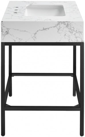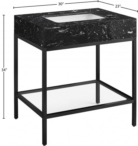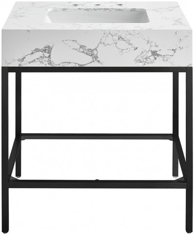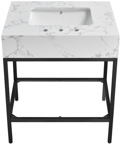 Meridian Furniture Marmo 30" Engineered Stone Top, Steel And Glass Base Vanity - Black