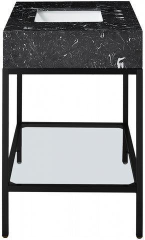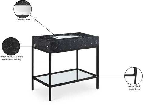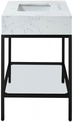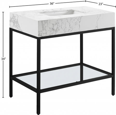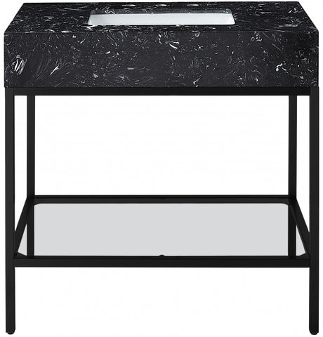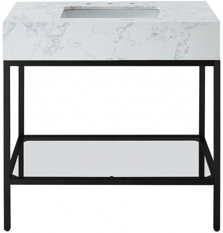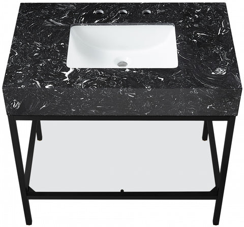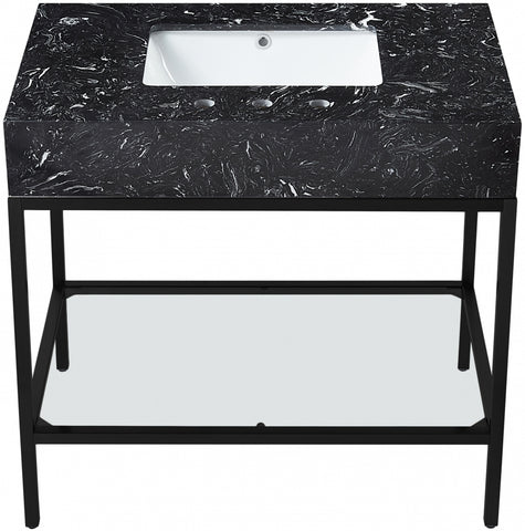 Meridian Furniture Marmo 36" Engineered Stone Top, Steel And Glass Base Vanity - Black