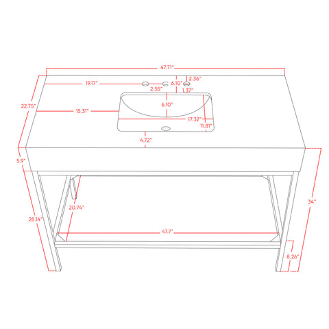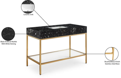 Give your bathroom a fresh new look with this Marmo 48-inch bathroom vanity. This eye-grabbing vanity gives your restroom a spa vibe that's oozing contemporary charm and sophistication. The black engineered stone sink features white veining for an upscale presentation and rests on a brushed brass-finish stainless steel base for long-lasting beauty and performance. Ceramic construction ensures durability, so you can count on this 48-inch sink lasting for the long haul.