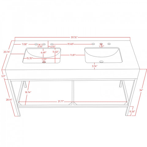 Dimensions: 17" W x 12" L x 7.5" D - 8" Widespread Holes for Faucet