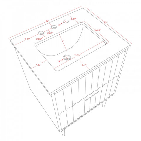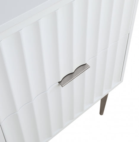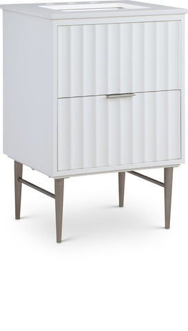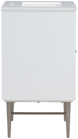 Your bathroom gets a revamp with this Modernist 24-inch bathroom vanity. This lovely vanity is a must for the contemporary bathroom space and features a rich white finish in brushed chrome for lasting beauty and performance. Made from solid wood and wood products, this vanity has a pretty Engineered Stone top for enduring good looks. Store bathroom essentials in its two drawers to keep your bathroom tidily organized.