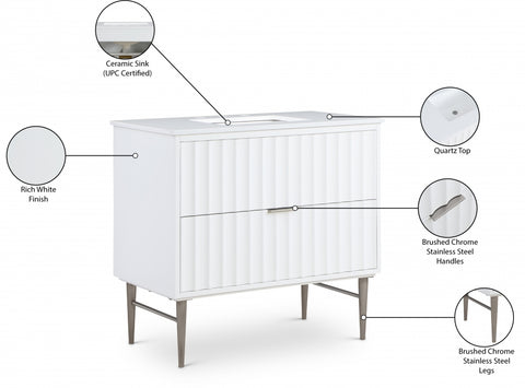 Meridian Furniture Modernist 36" Engineered Stone Top And Solid Wood Base Bathroom Vanity - Chrome