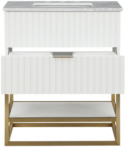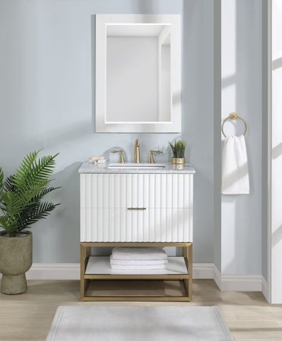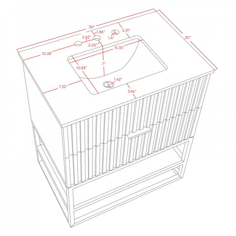 Organize your bathroom while upping your style quotient with this pretty Monad 30-inch bathroom vanity. A must for the contemporary bath, this unit features a rich white finish with birch wood veneer and a slatted design that's an instant eye-grabber. The ceramic sink is sized just right to serve it purpose without taking up too much room, and the drawer adds a convenient spot for storing bathroom necessities.