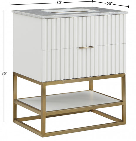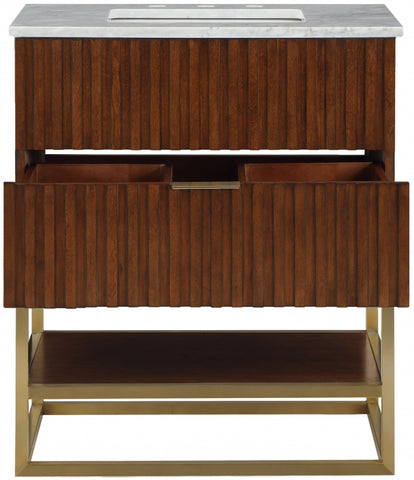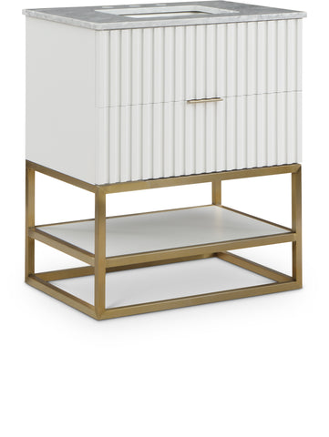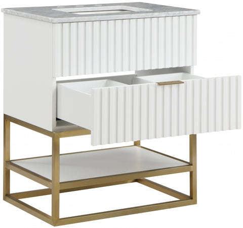 Meridian Furniture Monad 30" Genuine Marble Top, Steel And Glass Base Vanity