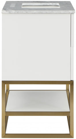 - Material: Carrara Marble, Birch Veneer, MDF, Stainless Steel, Ceramic