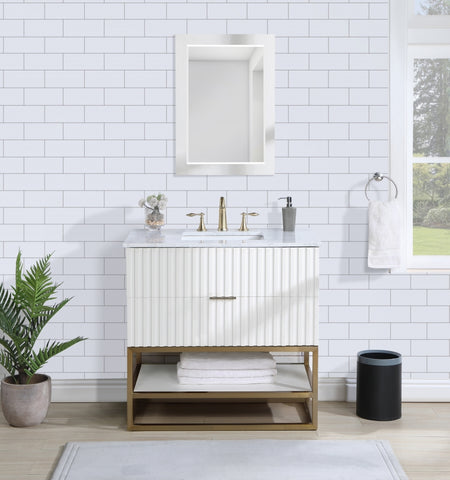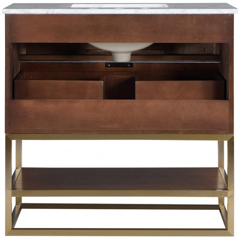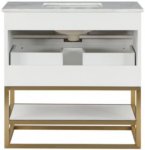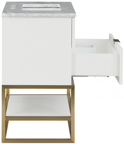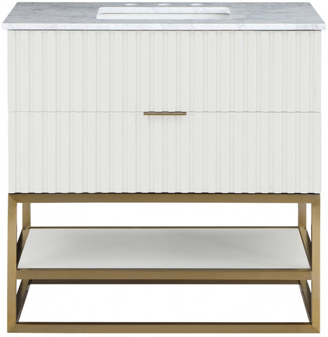 Meridian Furniture Monad 36" Genuine Marble Top, Steel And Glass Base Vanity