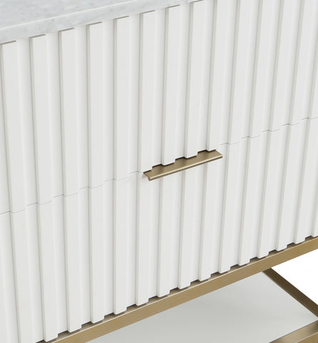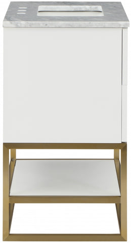 - Material: Carrara Marble, Birch Veneer, MDF, Stainless Steel, Ceramic
